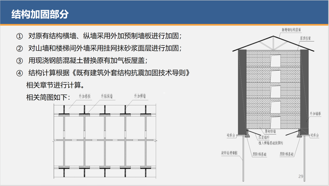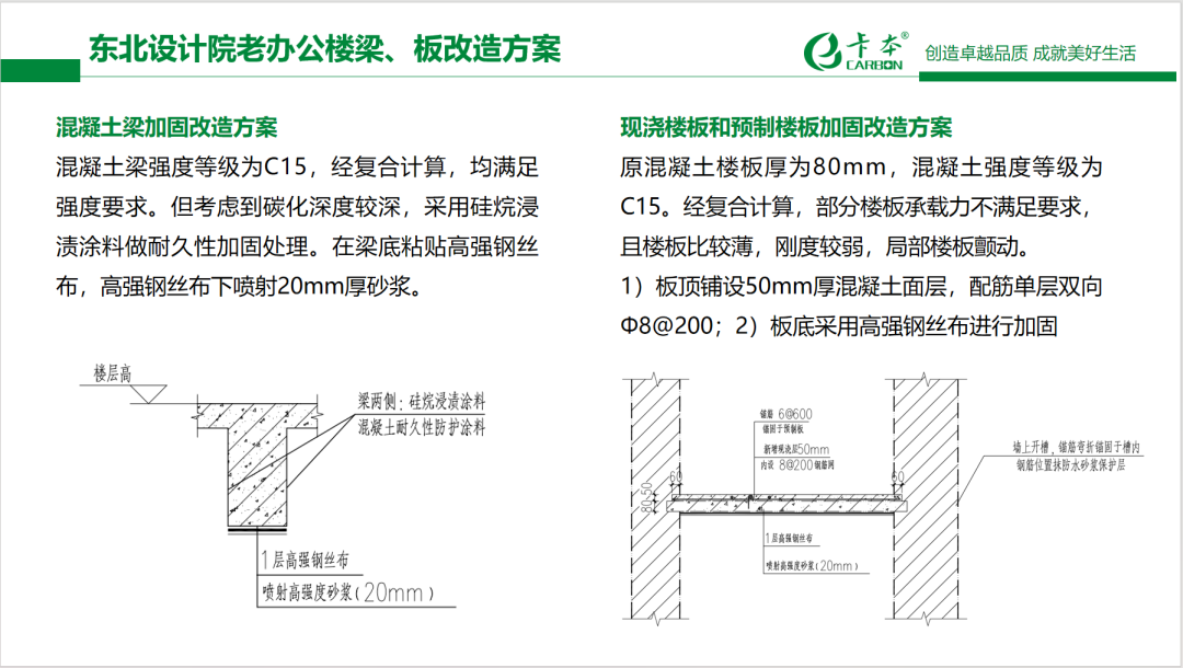 (1)通过东北某老楼加固等案例的分享阐述新工艺解决的主要问题,并分享应用过程中的设计、施工要点。