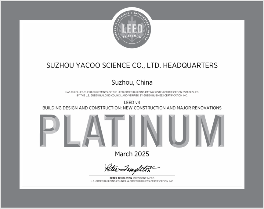 LEED 绿色建筑评价体系由美国绿色建筑委员会(USGBC)制定,是目前全球应用最广泛的绿色建筑评价标准之一。获得 LEED 铂金级认证,代表项目在节能、节水、室内环境质量及资源高效利用等方面达到该体系的最高评价等级。