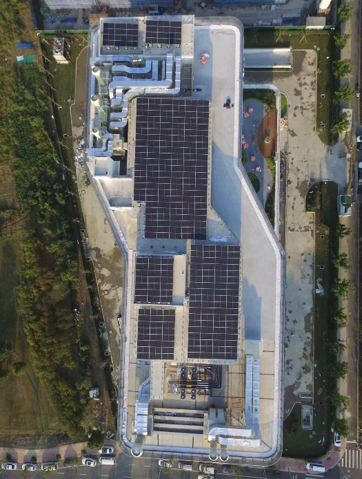 本项目屋面设置分布式光伏系统,采用“自发自用、余电上网”模式,在能源管理系统(EMS)协调控制下,光伏发电对建筑白天用电负荷形成有效源侧替代,降低了对市政电网的依赖,兼具环境效益与长期经济性。